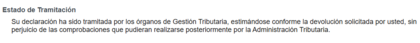 Eso mismo mensaje que yo. Requerimiento el 02/01. Contestado el mismo día. Y aun pone. Su declaración está siendo comprobada ya que hay discrepancias entre los datos que usted ha declarado y los datos de que dispone la A.E.A.T. en relación con determinados conceptos. Hoy me han dicho los de hacienda, que sobre mediados de febrero recibiré la notificación con la resolución. Qué tengas Paciencia!!!!
