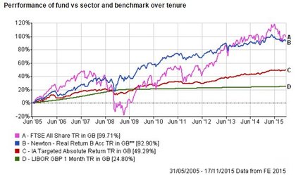 Su larga expereincia le ha permitido duplicar la rentabilidad de su categoria en los últimos diez años siendo excepcional su renduimiento en los mercados bajistas del 2008, 2011 y 2013. Como veis en periodos largos obtiene la misma rentabilidad que las acciones pero con mínima volatilidad.