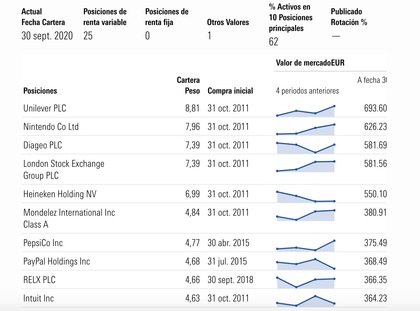 Tienen una buena cartera: Diageo Heineken Disney Unilever Intuit LSE Etc.