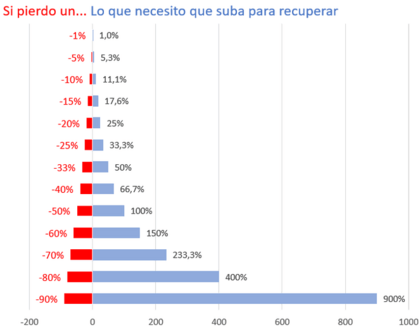 Aquí también se han puesto muchas veces las tablas de lo que cuesta recuperar una caída, caer un 50% no es cuestión de luego subir un 50% (como si eso fuese fácil)