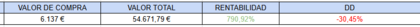 Ha subido un poco con respecto al MSCI WORLD porque ahora tenemos 54671 € (recuerda que hay que descontar la inflación de 25 años) pero está muy lejos de esos 75000 € prometidos por la literatura.