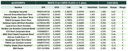 🟢 Los datos: PIMCO European Short-Term: +4,79% Neuberger Short Term Bond: +4,12% Evli Short Corporate Bond: +4,02% Lazard Euro Short Duration: +3,89%
