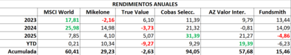 Estos son los rendimientos anuales de las carteras y el YTD (a fecha 12 de marzo):