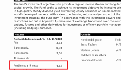 Me gustaría saber como ver en morningstar o similar, el rendimiento de distribución de un fondo. Para una acción, puedo consultar el % de dividendo, pero para un fondo de distribución, no se como ver el rendimiento distribuido.