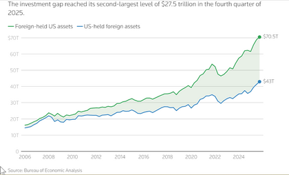 El saldo negativo aumenta para el mercado US,es decir, entra más dinero  del exterior del que sale a invertir fuera.