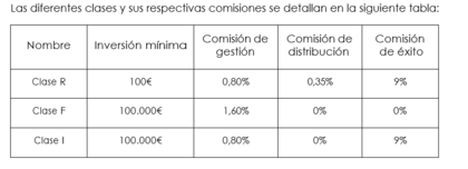 - Clase R: destinada a cualquier inversor, con una inversión mínima de 100 euros. Tendrá comisión de distribución.