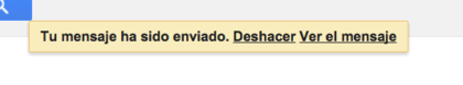 Al enviar un correo, vemos que nos hemos equivocado. Nos aparecerá la opción en un recuadro amarillo: Deshacer o Ver mensaje. Si queremos deshacer el envío, clickaremos sobre Deshacer envío y nos aparecerá "Envio desecho"