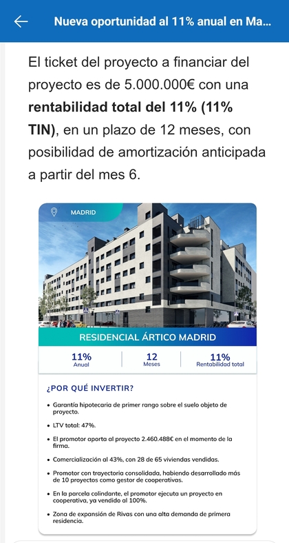 Las plataformas en vez de due dilligence real se convierten en comerciales y ocultan los riesgos, el ejemplo de ahora es sangrante ¿es que alguien se cree que Civislend no lo conoce? si lo conoce y no nos avisa malo, si no lo conoce peor, es más en todos los sitios que pongas te recomienda que lo denuncies a la CNMV, ese proyecto no lo debería haber ofertado.