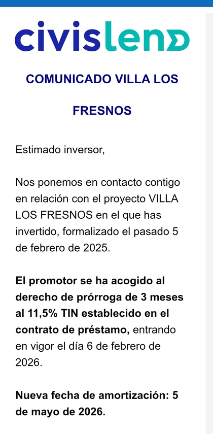 ESTADO: Tras respuesta oficial de Civislend a preguntas específicas.