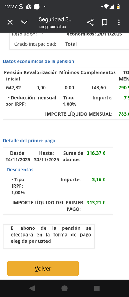 Luego en diciembre, sobre el 25, vas a cobrar la cantidad de arriba, 783 euros netos.